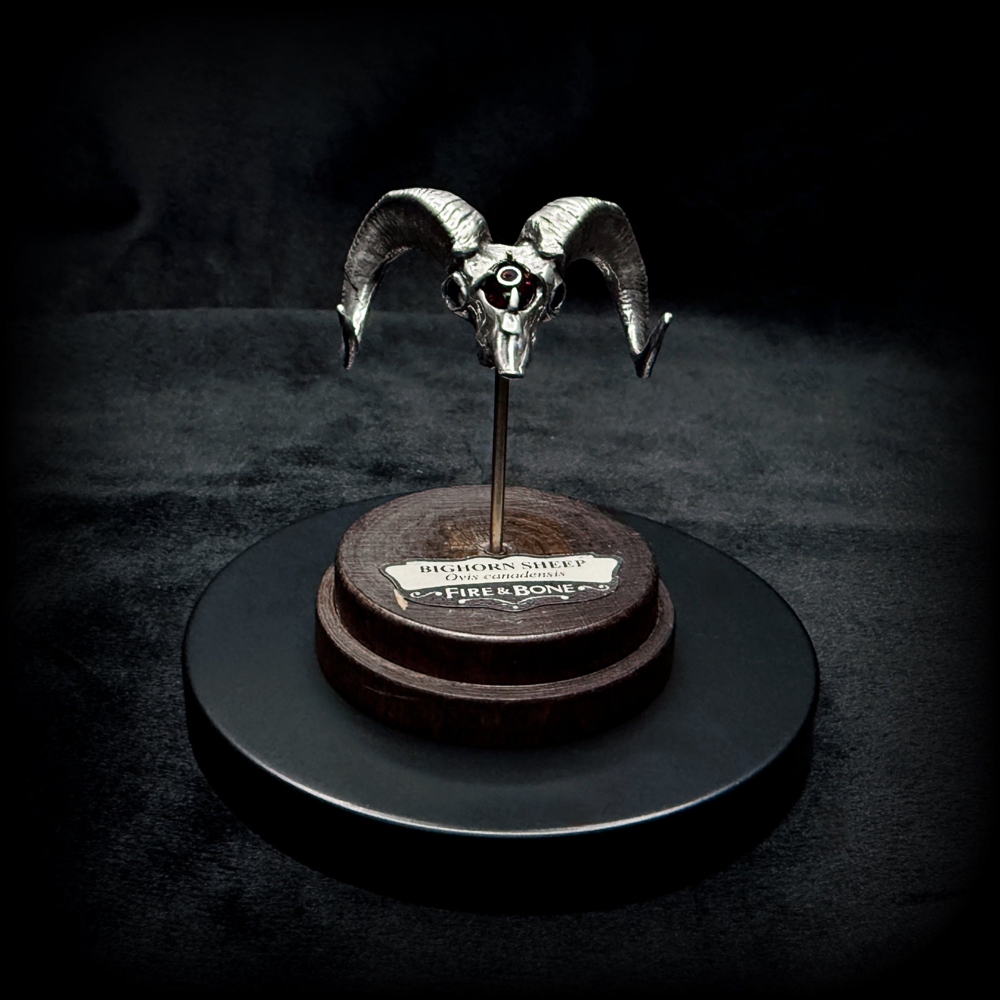 Big Horn Sheep Skull Garnet Pendant With Base - Sterling Silver