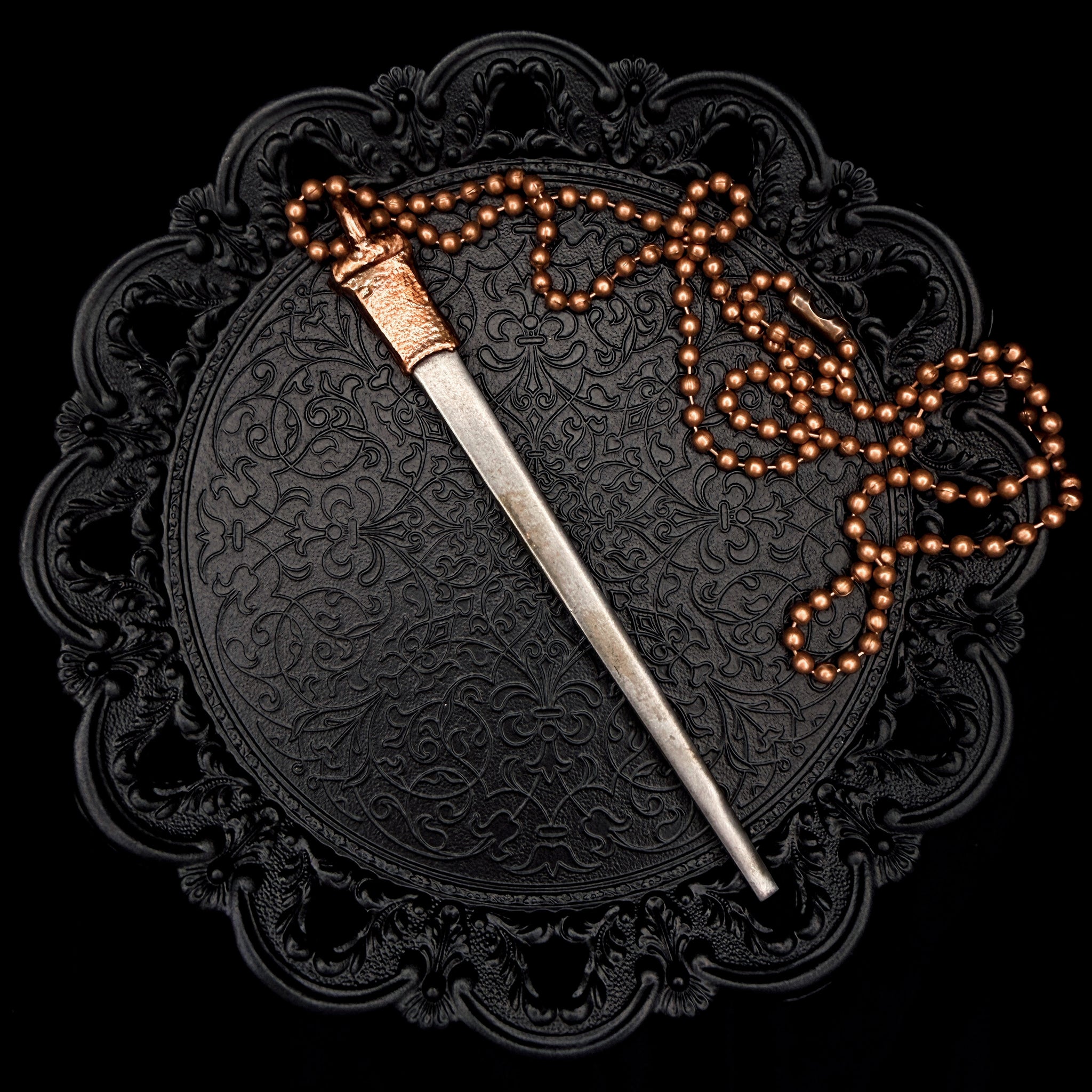 One copper electroformed Antique Copper Coffin Nail complete on a 66cm antique copper ball chain.