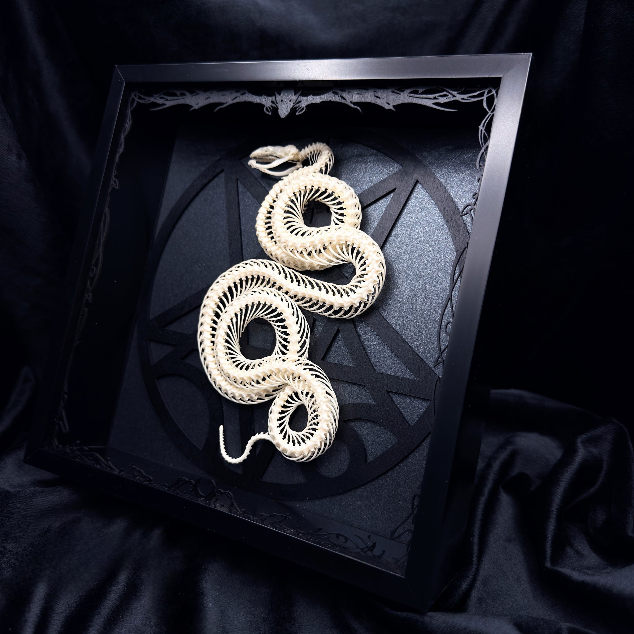 Coiled Viper Skeleton specimen with our ‘26 ‘Morbid Angel’ design in all BLACK.