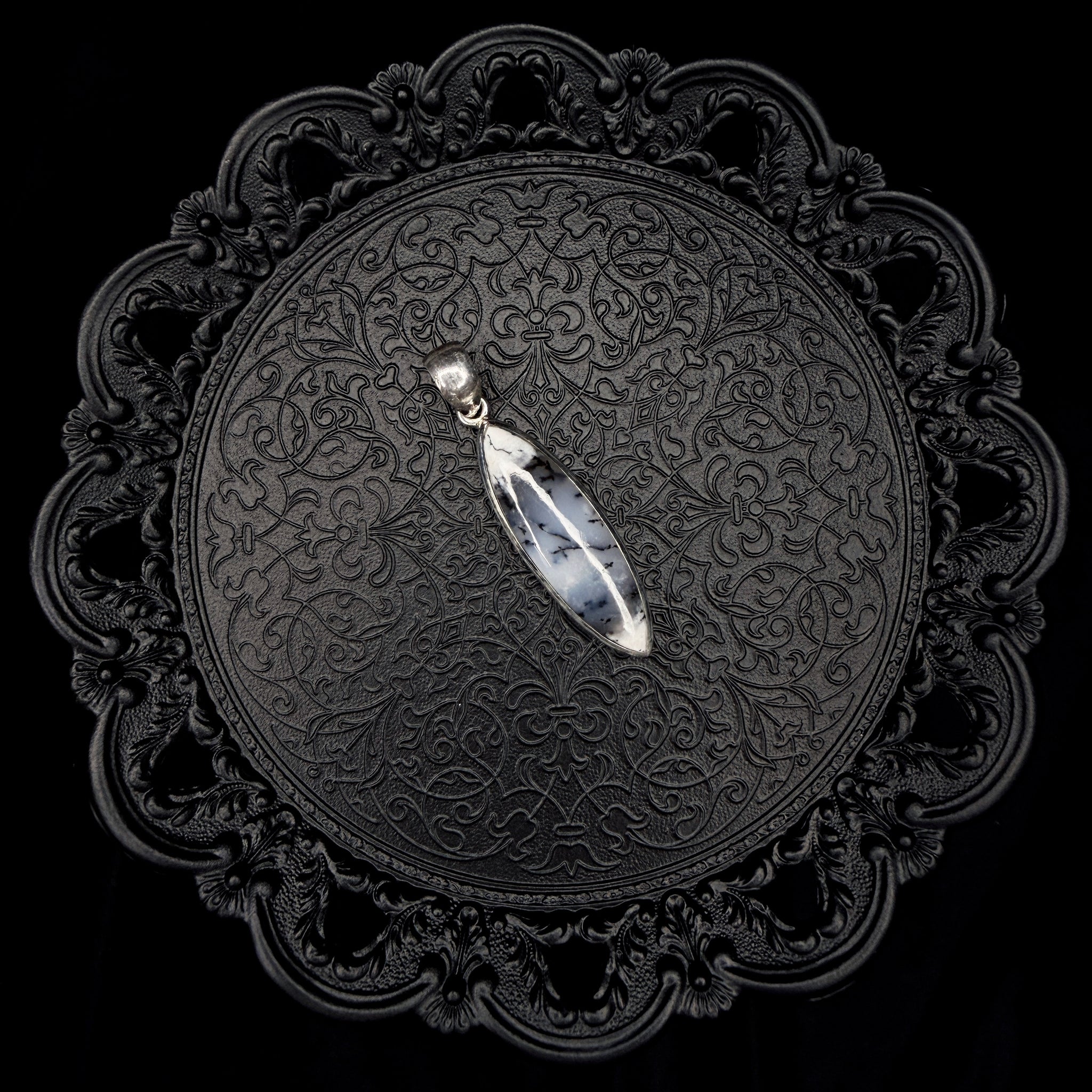 Dendritic Agate Cabochon Marquise Pendant - 925 Sterling Silver