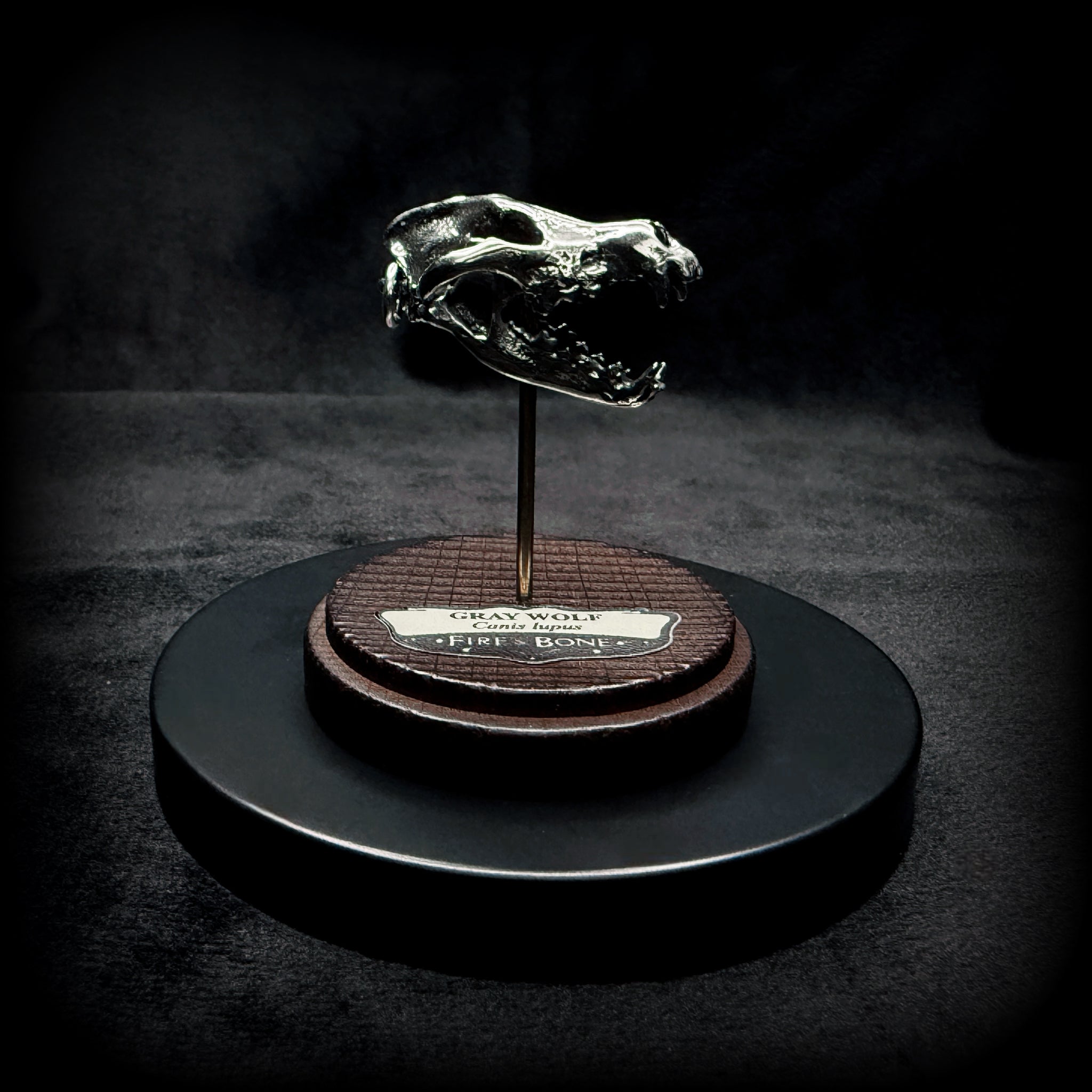Canis lupus - An apex predator, the Gray Wolf hunts in cooperative packs and has a bone crushing bite. Fitting then, that our Gray Wolf skull has a hinged jaw.