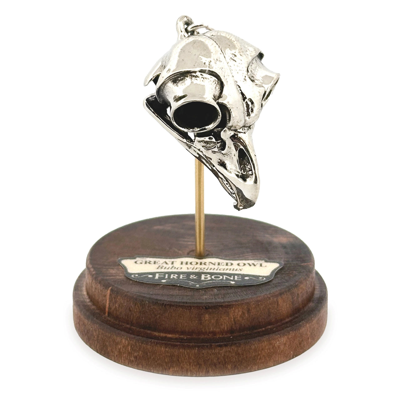 Great Horned Owl Pendant With Base - White Bronze