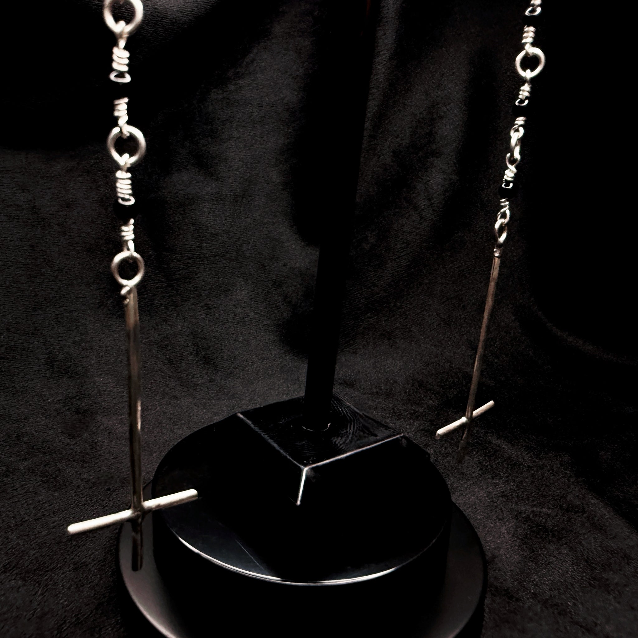 Measurements: Total length of earring 12cm. Crosses approx. 5.5cm
