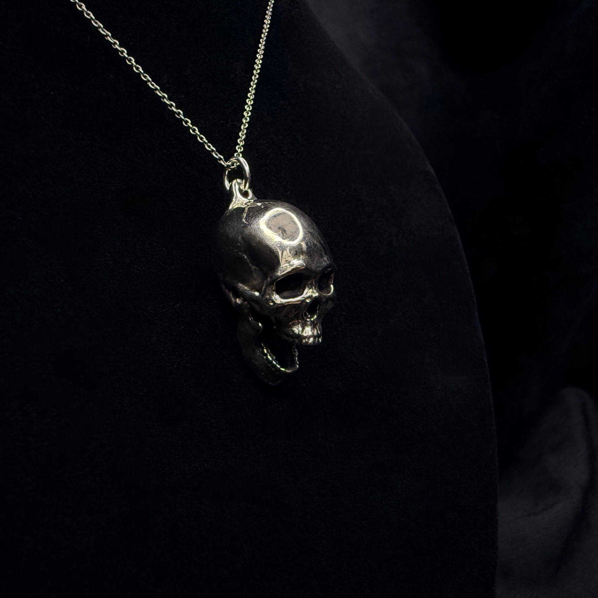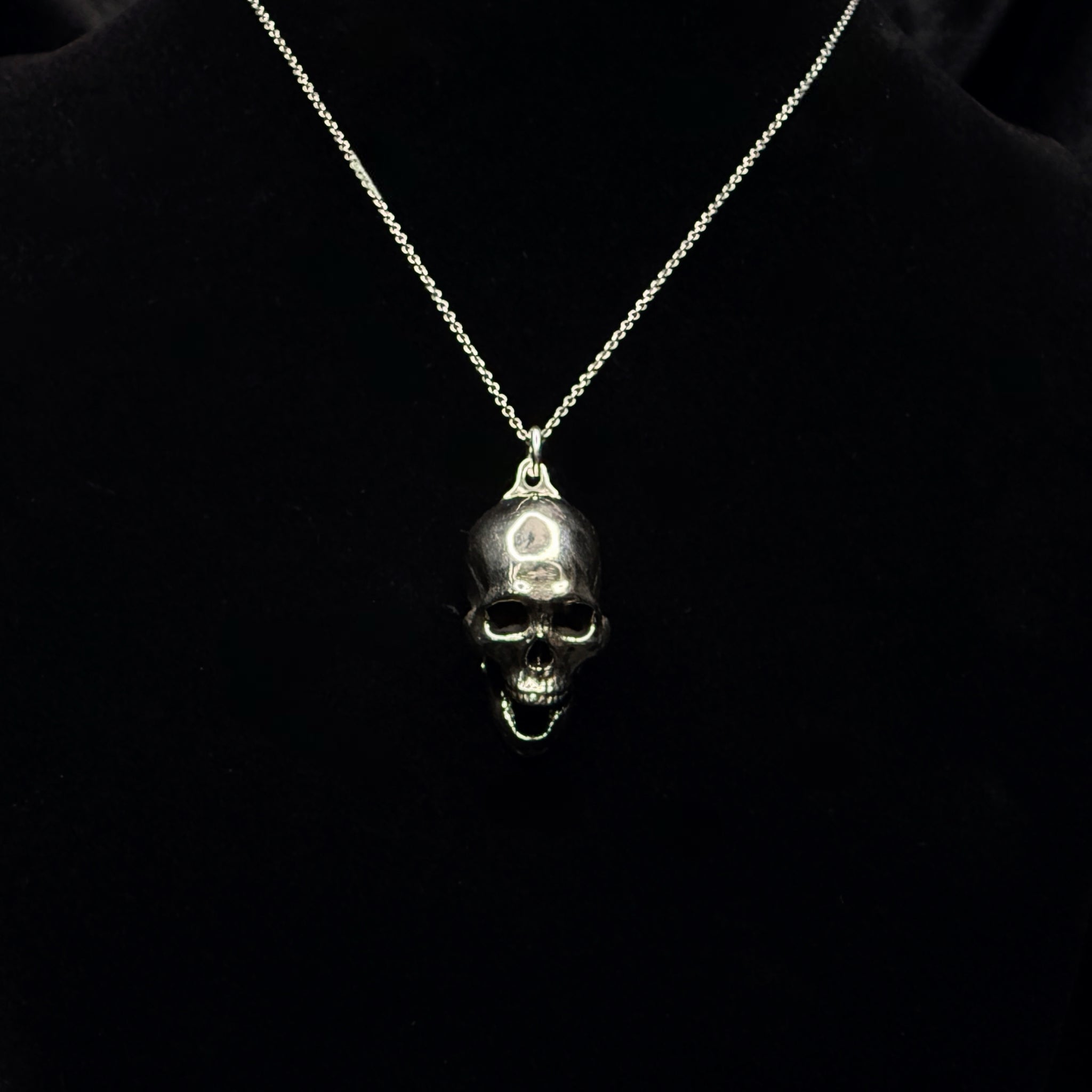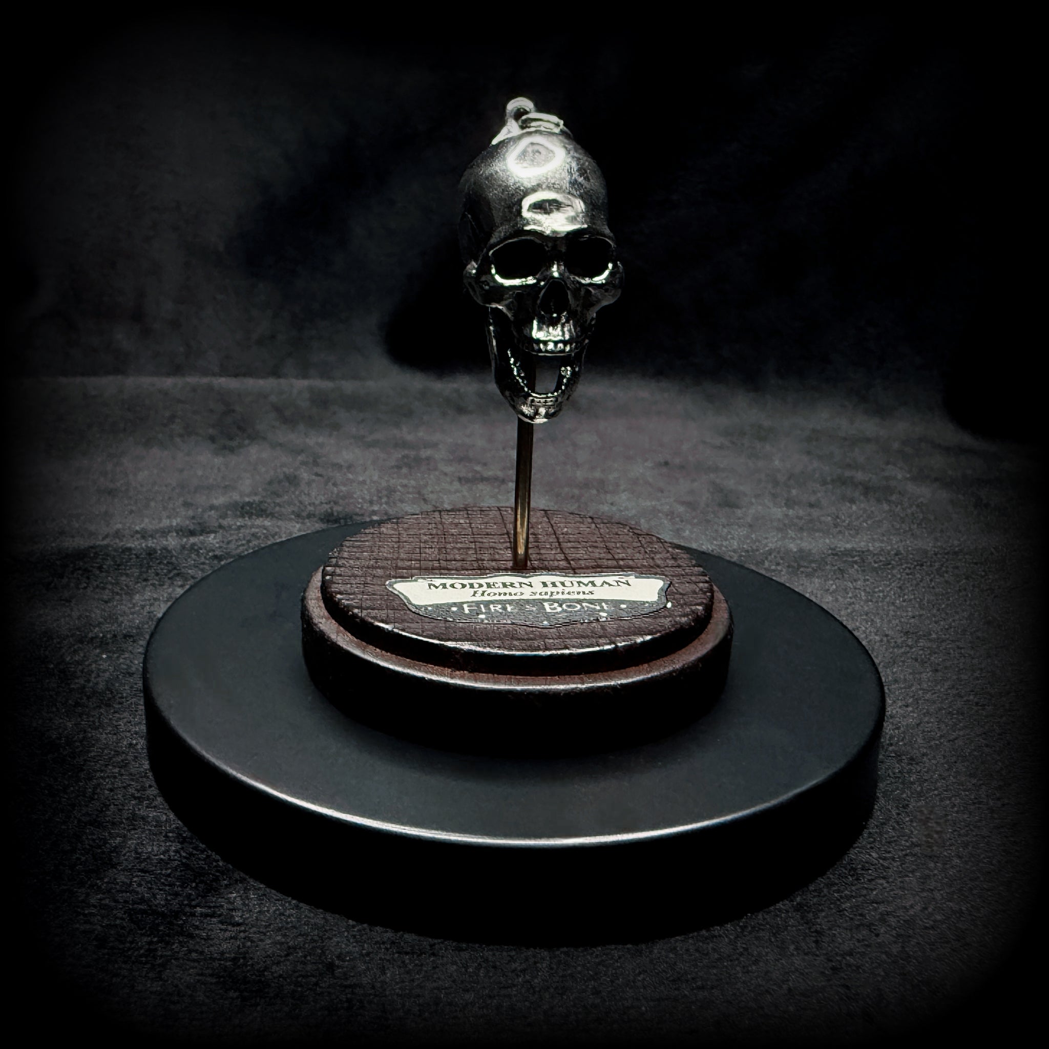 Modern Human Skull Pendant With Base - White Bronze