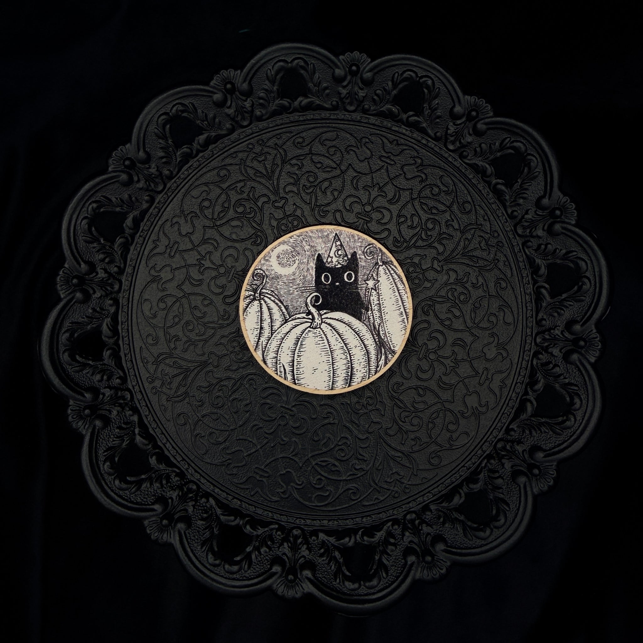 Pumpkin Wizard Black Cat Wooden Pin by Jon Turner Illustration