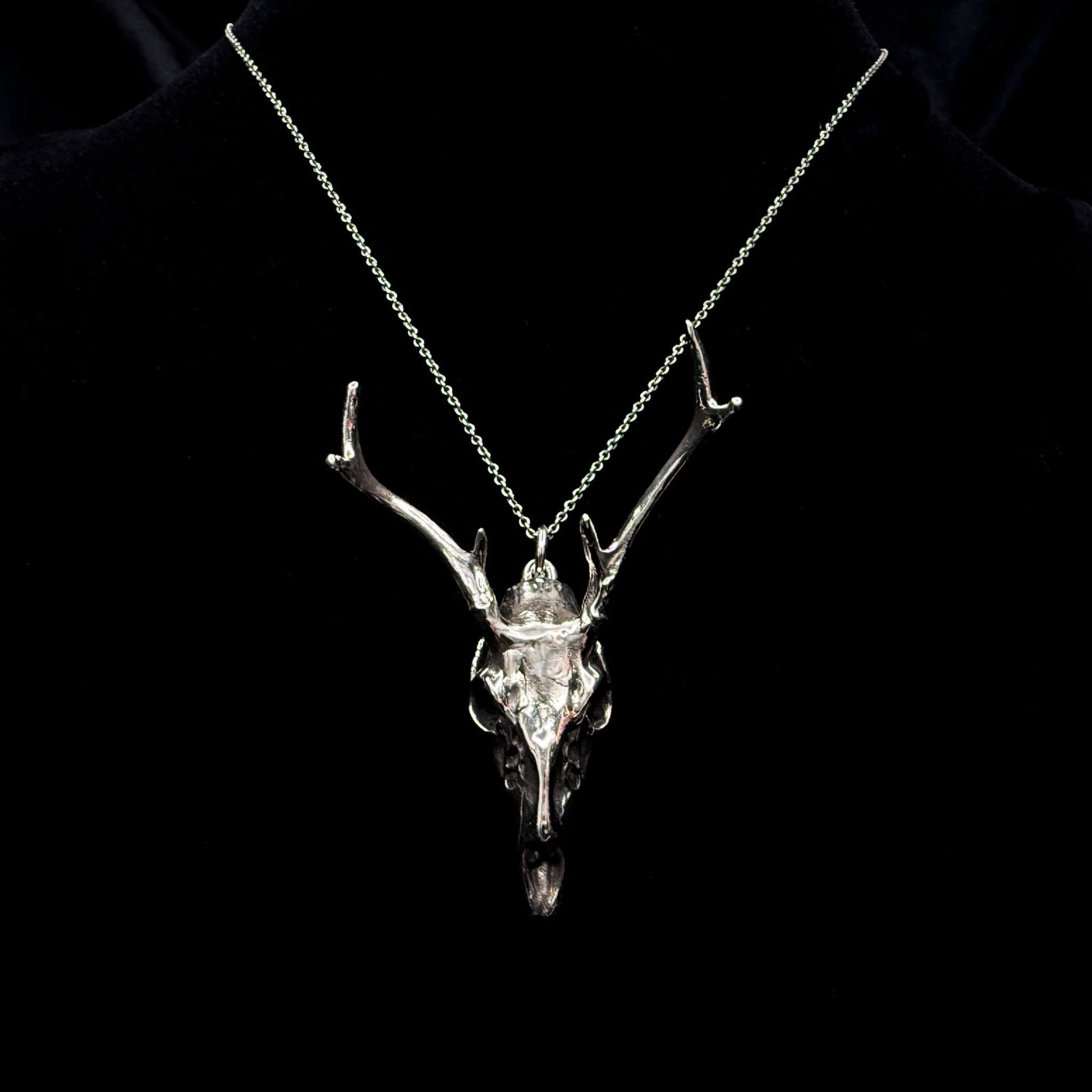 White Tailed Deer Skull Pendant With Base - White Bronze